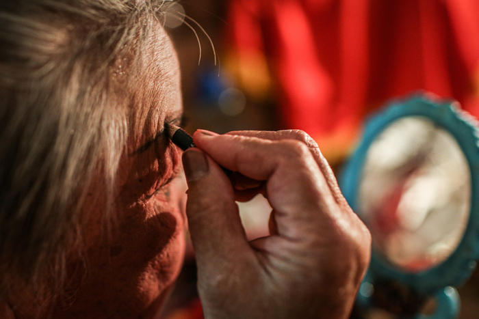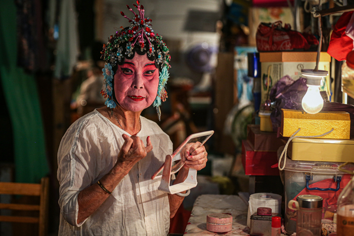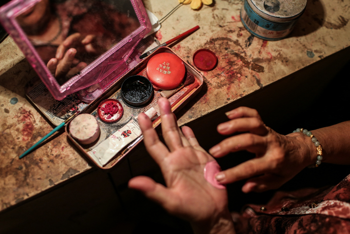 △ 正在化妆的剧团团长李丽珠。