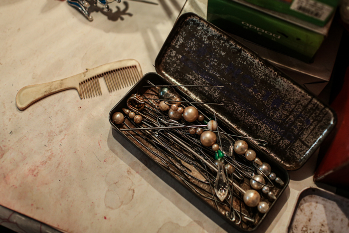 △ 一位演员放簪子的铁皮文具盒,已经满是锈迹。