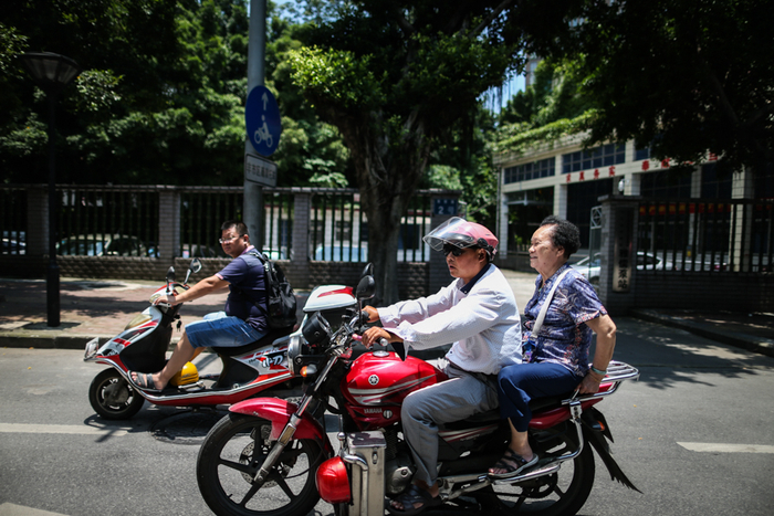 △ 谭秀华坐摩的在去剧场的路上。谭秀华每天坐车需要6元钱,而他们演一场只有5.5元工资,家里人都说她是背着米打工。