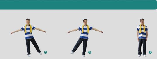 第四步:重心移于左腿,换右侧练习,动作相同。