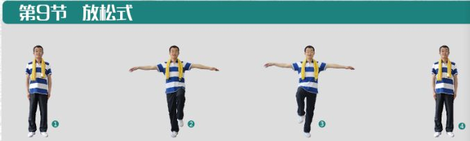 第二步:双臂自然摆动,同时正向抬腿放松,左右两腿各一次,还原。
