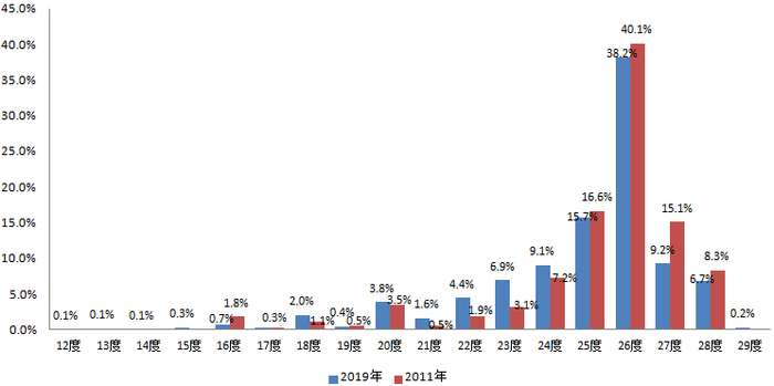 新京报讯(记者 李玉坤)调查显示,夏季空调设定温度呈下降趋势。
