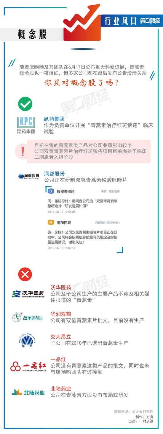 受此消息影响,青蒿素概念股闻风而起,截至今日收盘,昆药集团、润都股份三连板,复星医药、白云山、新和成等个股纷纷上涨。