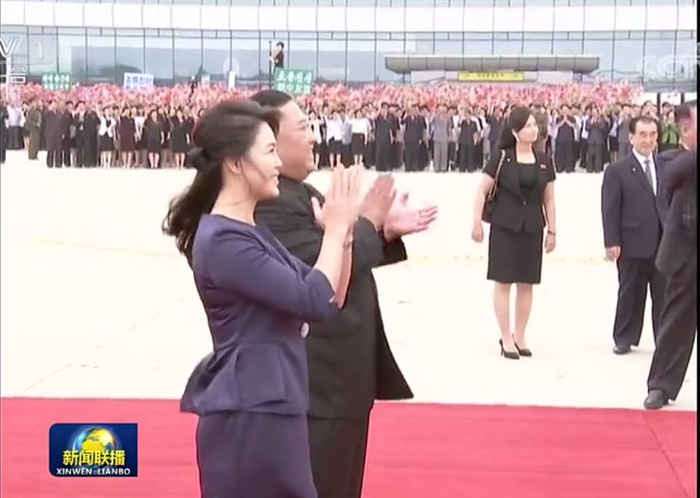 值得注意的是,金正恩和夫人李雪主亲自到机场迎接习近平主席和夫人彭丽媛。