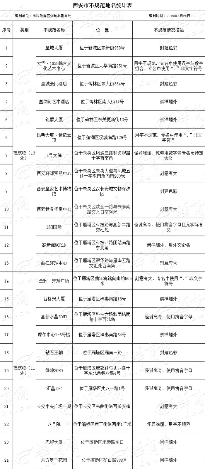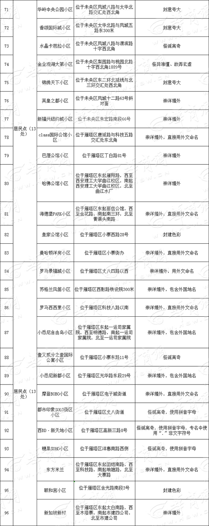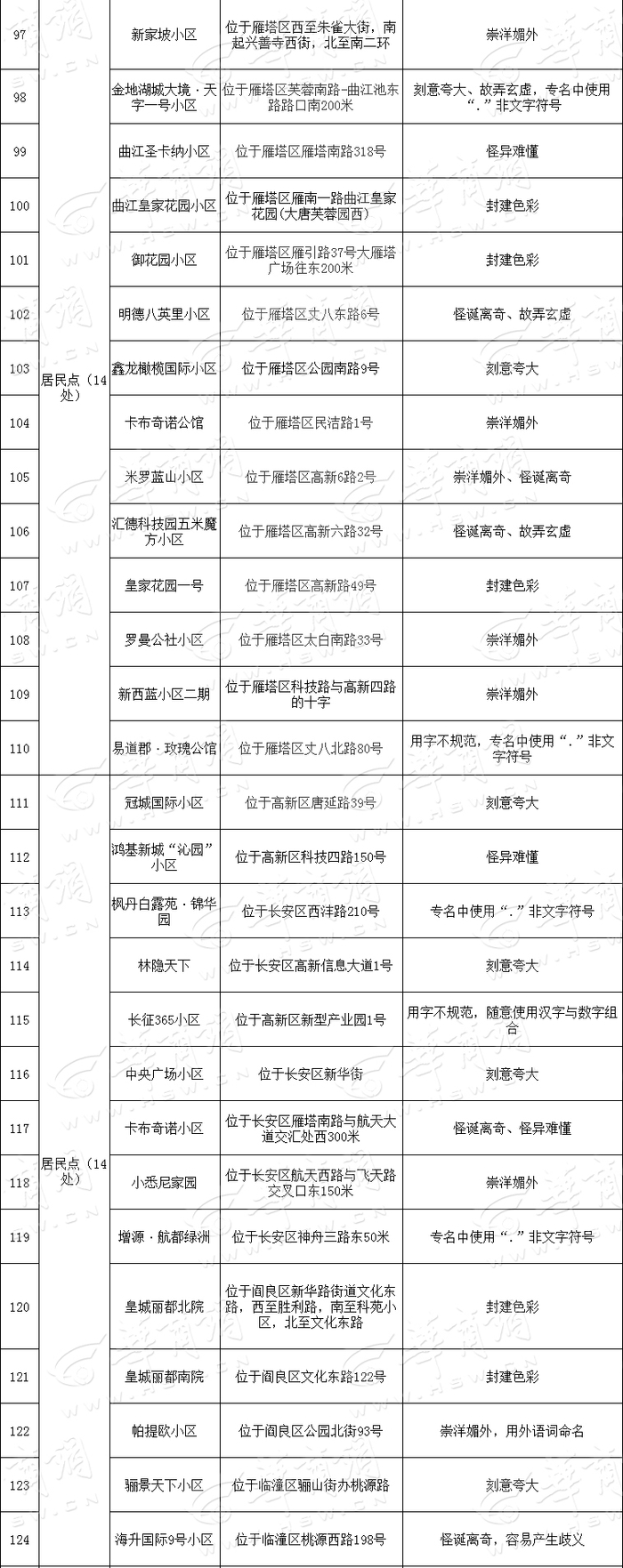 西安151个“崇洋媚外”等不规范地名减至98个
