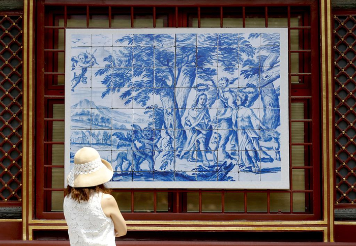 最近,“釉彩国度——葡萄牙瓷板画500年”展在故宫博物院永寿宫举办,这是故宫博物院首次与葡萄牙国立瓷板画博物馆合作举办的展览,共展出16世纪至21世纪50余幅葡萄牙瓷板画精品。由于每幅瓷板画都是由数块瓷板拼接而成,因此用于本次展览的瓷板多达