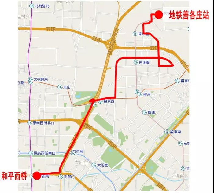 [增设站位]:地铁善各庄站、善各庄西站、容达路、北京八十中学东门;