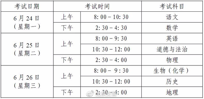 此外,据气象部门预报,中考期间天气仍然炎热,气温在22—32℃,应提前做好防暑降温准备。