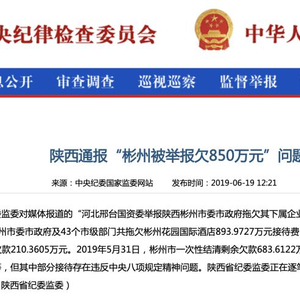 政府拖欠800万吃喝款被跨省举报 中纪委网站:丢人