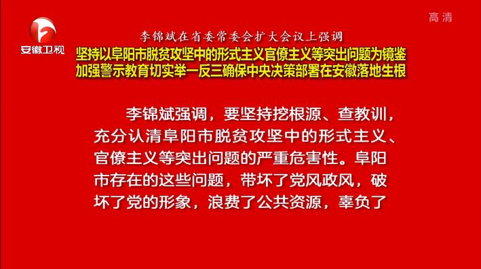 中央具体通报了什么官方并未披露,不过,在会议上,安徽省委书记李锦斌直陈,“坚持以阜阳市脱贫攻坚中的形式主义、官僚主义等突出问题为镜鉴”。
