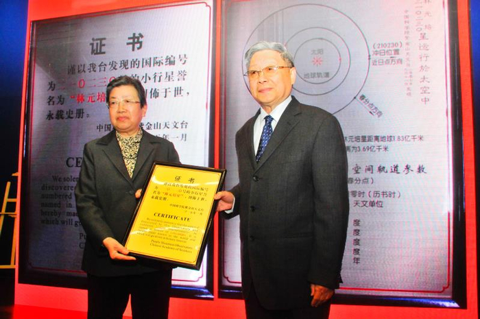 2015年4月10日,获国际小行星中心颁发的“林元培星”铜匾和证书。