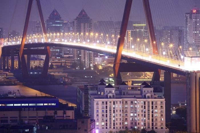 1993年9月建成的杨浦大桥,主桥长1172米,犹如一道横跨浦江的彩虹,跨度为当时世界第一。如果说,南浦大桥的建成通车,实现了黄浦江市区段大桥“零”的突破,杨浦大桥的建成,则标志着中国的斜拉桥设计建造能力一举跃居国际桥梁界领先地位。