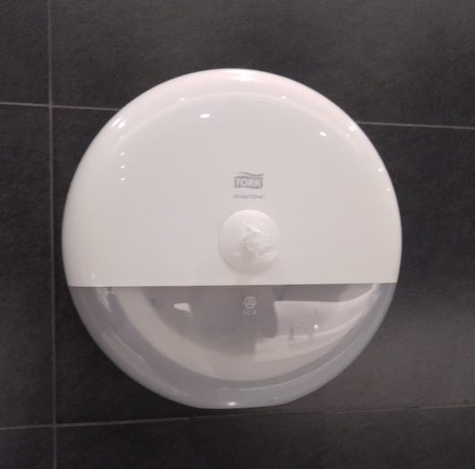 记者从来福士中心了解到, 这是今年4月整个中心更换的自动断张的下拉式纸盒,代替了原先的大尺寸卷纸盒,一个半月用纸量节约了50%。