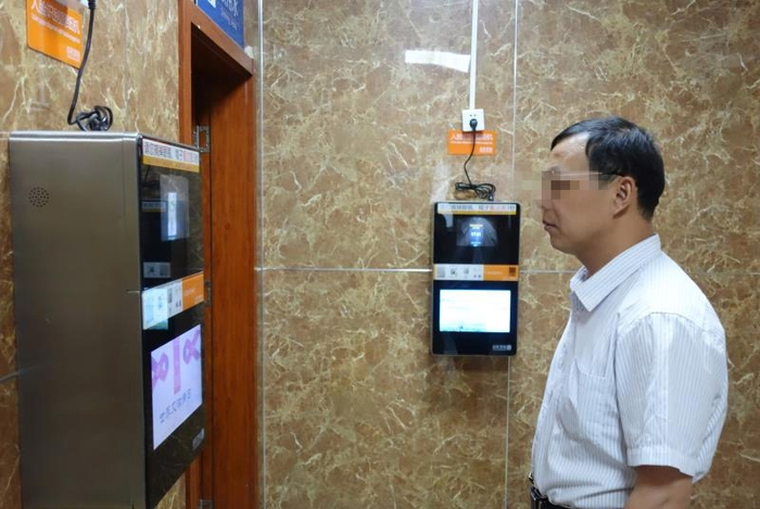 5月13日,北京医院的卫生间门口,人脸识别厕纸机前,有人在等候取纸。机器上方写着提示“请您摘掉眼镜、帽子看这里3秒”。记者按照要求站到机器前方正方形黄色的“识别区”,与机器对视3秒,很快出纸口推出了一段近70厘米的厕纸,随后取纸后机器提示:您已取纸,请稍后再来取用。