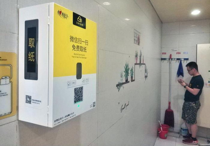 目前,有多家公司在运营扫码取纸的设备。“趣趣用纸”工作人员称为方便老年人用纸,正着手推进免扫码设备上市。而“坐享科技”的工作人员表示,后台数据显示,老龄化人群使用量占总使用量的40%。