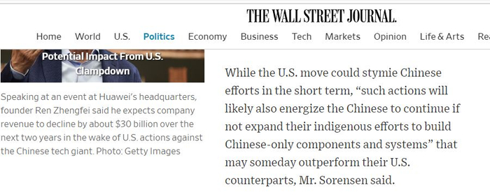 实际上,美国《纽约时报》和《华尔街日报》也都不认为美国政府的这一打击中国超算的举动会阻碍中国的发展。这两家媒体采访几位不同的美国超算专家就表示,美国政府的行为虽然短期内或给中国的超算发展带来阻碍,却也会更加坚定中国开发本土技术替换美国科技的决心。
