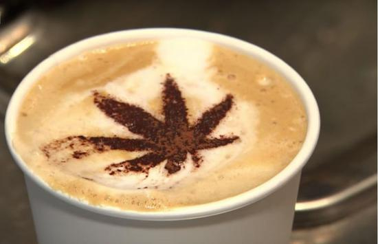 大麻叶形状拉花的卡普基诺