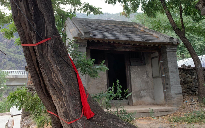 新京报乡村频道记者在村口就看到了“神祠壁画”的宣传画,但将村里唯一的小道走到尽头,也未见壁画所在。跟村民打听许久,才在村子北口的一棵古树旁,找到一处房山区普查登记文物——“七圣神祠”。