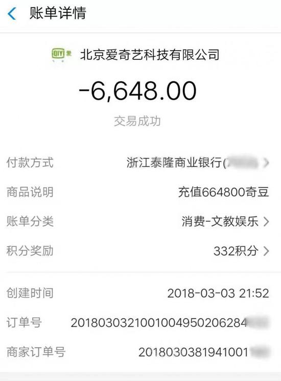 “我曾经当着孩子的面买过学习用品,可能是输入密码的时候他记住了。”孟女士说,在2018年6月前后,当时家里需要用钱,她查看爱人的银行卡账号发现,卡上只剩了一小部分,这让她大吃一惊。“我查询了进出账记录,发现总共有20多万不见踪影,其中在爱奇艺上消费14.38万元。”