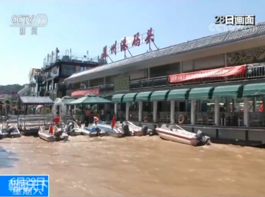 央视记者 安文剑:这里是黄河兰州码头,目前出入码头的道路已经被封闭。由于连日来黄河水位上涨,目前通往趸船的道路和标识已经全部被黄河水淹没。