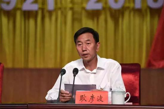 据现场图片显示,耿彦波着浅色衬衣,认真阅读材料。