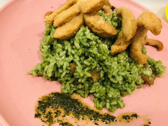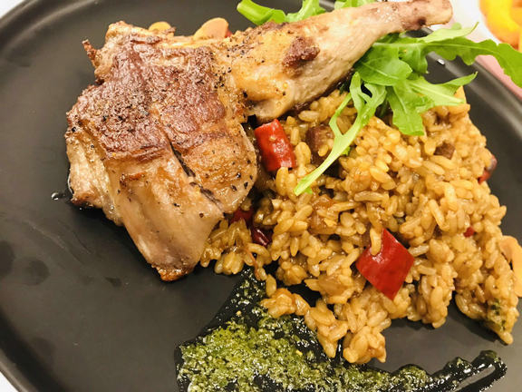 主菜来了!煎小羊排烩饭一端上来,香味便扑鼻而至。小羊排看似普通,吃起来口感却格外鲜嫩。烩饭也是如此,看似简单,但米粒吸收了汤汁,再包裹上香浓奶酪,外加一点点硬芯的特殊口感,一口吃下去,层次分明口感丰富。