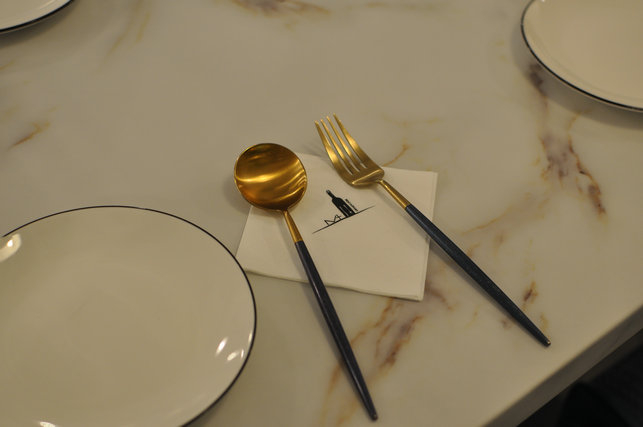 乍一看M+的门面,独特的装潢清新又文艺、黑色的招牌奢华且低调,心里瞬间生出好感。当走进门的那一刻,更是好感倍增。白色的墙壁、大理石纹的餐桌、满眼的绿植,简约的欧式风格装修时尚而舒适,此刻内心也突然变得恬静柔软起来。