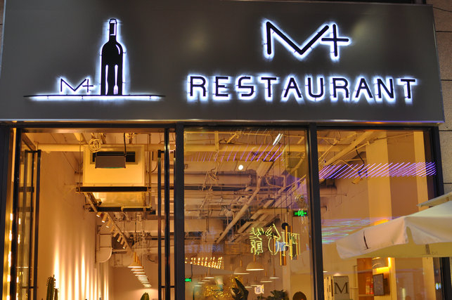 M+Restaurant位于华熙live东区地下一层。从地铁五棵松站(B1口)出站,通过彩虹隧道,沿着右手边一直走,就会看到一堆仿佛外星来客的银色小人,这座群像雕塑吸引着众多颜值超高的小姐姐在此自拍。绕过雕塑,走进右手边的胡同里,显眼的“M+”标志就会跃入眼帘。M+旁边是Moi密室逃脱,脑力全开后直接“转场”,到隔壁吃点轻食放松一下也是对自己的奖赏。