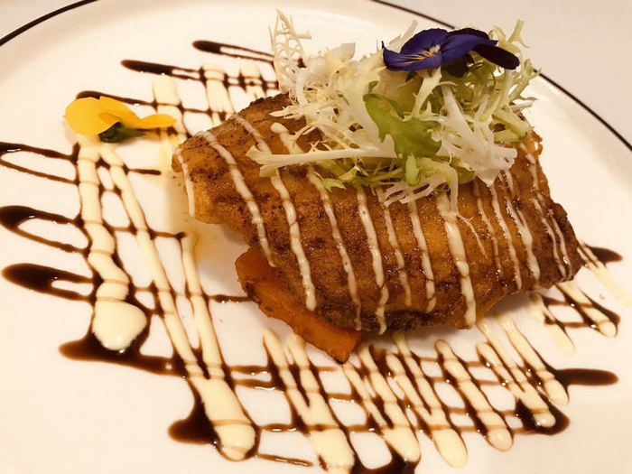 海盐香煎龙利鱼口感绝佳,鱼块被煎得色泽金黄,表层酥脆十足。用口感独特的海盐来料理海鱼,鲜香嫩滑的鱼肉被赋予了更多的味觉层次,这道美味中的海盐与海鱼简直就是最佳搭档。