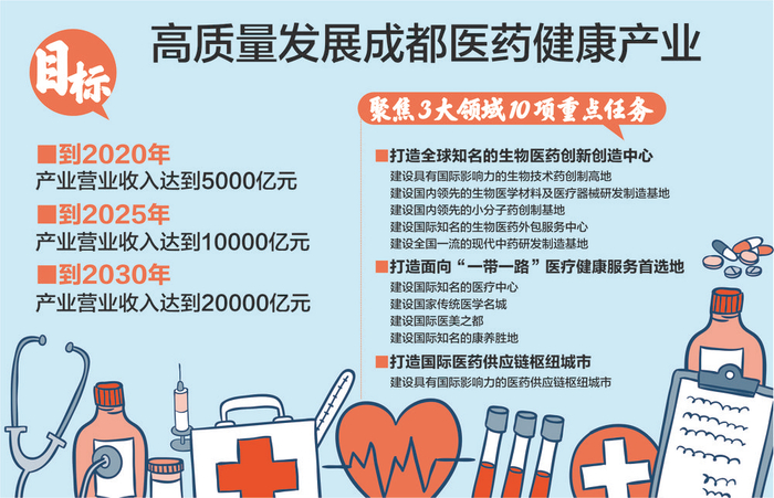原标题:成都出台医药健康产业“顶层设计” 2030年目标营收20000亿元