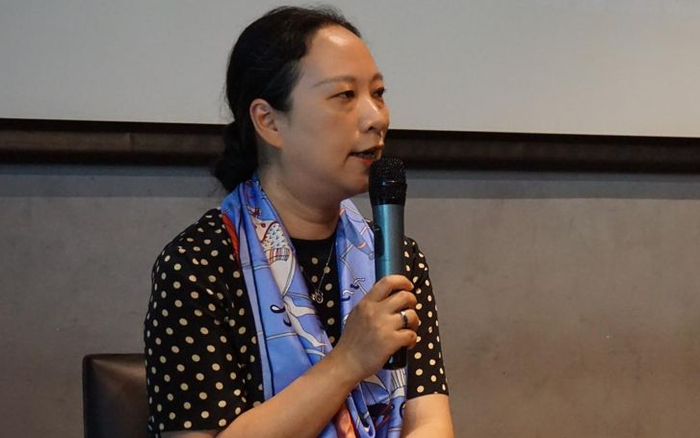 活动现场。从左至右依次为:彭伦、林白、袁筱一、余中先。