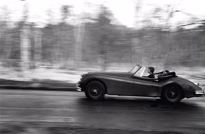 1958年,开着跑车的萨冈。萨冈在一个富裕的法国家庭出生,在学校读的是文学,成绩烂透。她在暑假以七个星期的时间,写了第一本书《日安忧郁》(Bonjour tristess),讲述一个阻止父亲与情人结婚的少女。该书首年在法国推出,便卖出五十万本,并为她带来法国文学评论大奖。该书带来的收入,她用之购买了一辆捷豹(Jaguar)跑车。图片来自:Tumbler。