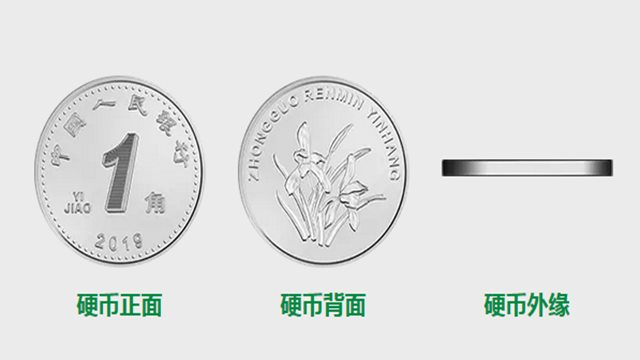 相比较1元和5角,新版1角硬币也发生了一些变化。2019年版第五套人民币1角硬币保持了2005年版第五套人民币1角硬币外形、直径、材质、外缘特征、“中国人民银行”行名、汉语拼音面额、人民币单位、花卉图案、汉语拼音行名等要素不变,调整了正面面额数字的造型,正面边部增加了圆点,也对背面花卉图案做了适当的收缩。