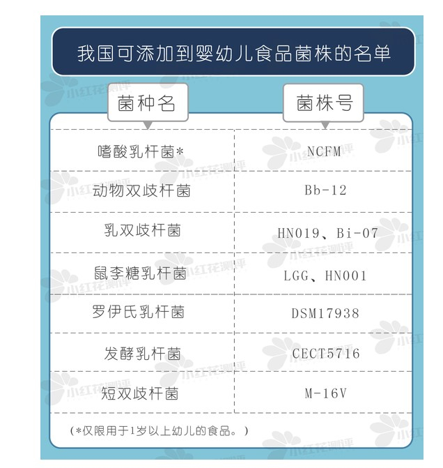 值得注意的是,并非每种益生菌都可以给婴幼儿食用。根据国家卫健委官网2016年公布的名单,目前可以用于婴幼儿食品的益生菌仅有7个菌种的9种菌株,且与成人可食用菌种相比要求明确到菌株种类。