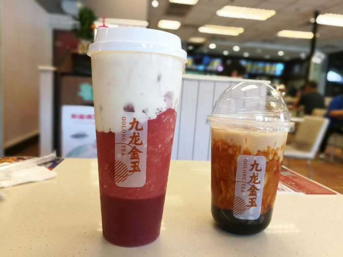 在肯德基甘露园店,甜品站依托餐厅开设独立窗口,消费者可直接在甜品站点单、取餐,根据店员的说法,该甜品站最近才开始营业。新京报记者注意到,目前可供选择的饮品有4类共10款,被称为“九龙金玉乌龙茶饮”系列,分别为本味乌龙茶类、脏脏茶类、牛乳茶类、酸奶奶盖茶类,价格为14元至25元不等。与其他茶饮品牌的奶盖茶不同,肯德基主打“酸奶奶盖茶”。但是,目前在甜品站内,消费者还无法根据自身口味对甜度、配料等进行个性化选择。