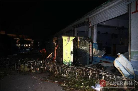 开原市交通公交有限公司的多辆汽车在此次龙卷风中被吹翻。