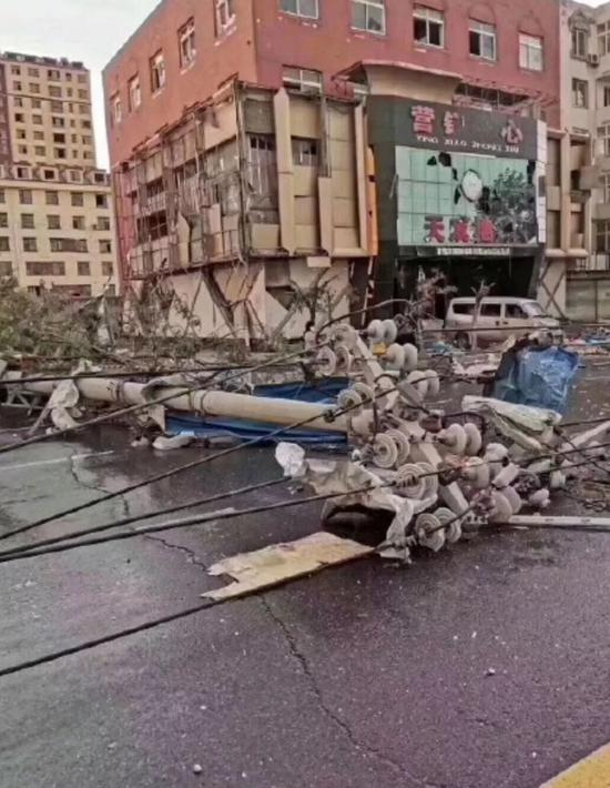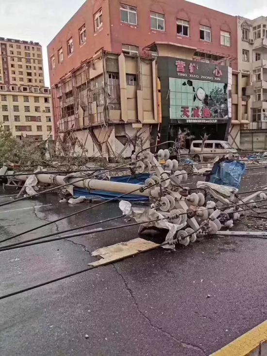 因为电线杆大量受损,开原市铁西地区基本全部断电。