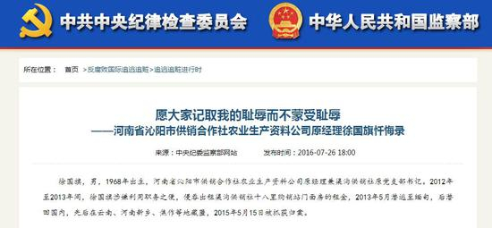 2013年5月,河南省沁阳市供销合作社农业生产资料公司原经理兼渠沟供销社党支部书记徐国旗,因侵吞公款逃至缅甸,2015年5月被抓捕归案。