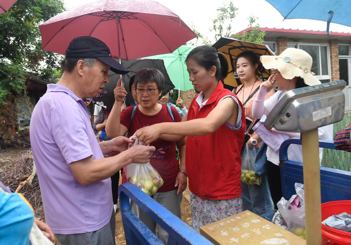 市民采摘后统一过称交钱。新京报记者/吴宁 摄影
