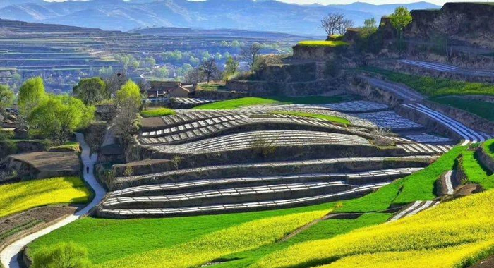 现如今,被誉为“梯田王国”的庄浪大地,望山山翠,看地地平,层层梯田如雕如塑,如诗如画。其“山顶沙棘戴帽,山间梯田缠腰,埂坝牧草锁边,沟底穿鞋”的生态梯田综合治理模式,在黄土高原上树起了一座生态建设的丰碑。