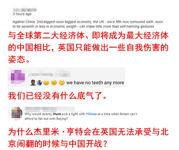 在当天的一篇评论中,BBC犀利指出,亨特之所以发出威胁后却对有何具体举措语焉不详,正是“因为英国很少有外交或经济牌可打,而且亨特也不想挑起可能进一步损害中英关系的后续冲突”。