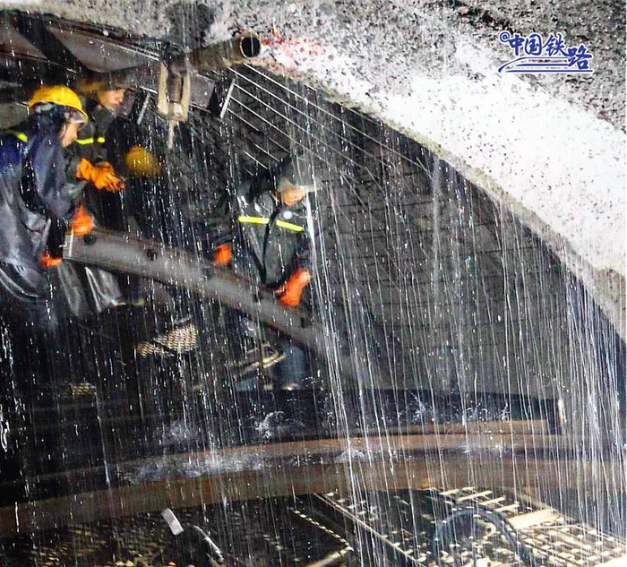 亚洲最长铁路山岭隧道施工:头顶瀑布 摆冰块降温
