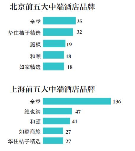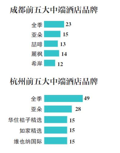 新京报记者就此选取了北京、上海、杭州、深圳、成都五座城市,作为华北、华东、华南和西南地区代表,梳理华住、锦江、首旅、亚朵等酒店集团的中端酒店品牌在当地的布局情况,还原中端酒店城市布局逻辑。