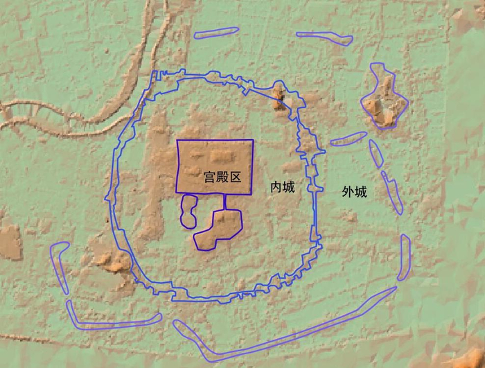 内城由城墙围合而成,以宫殿区为中心,内城分布有墓地、居址(含手工作坊)台地、古河道等遗址。
