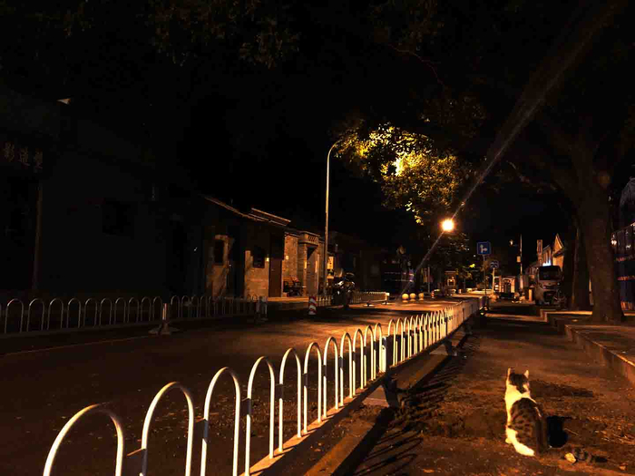 凌晨三点,即便是夏季也不免微凉。昏黄的路灯静静铺洒在宁静的街道上。京蜜在独自等待店家开门的过程中偶遇了一只小猫咪,它可能是怕京蜜一个人害怕,一直守在一旁,让人感觉心里暖暖的。