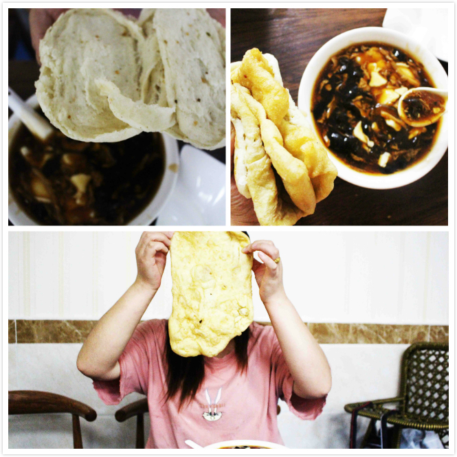 再说油饼和大火烧,真可谓货真价实。大火烧是发面的,一块钱一个。油饼真的超级大,京蜜用余光一扫,这张饼绝对比店里90%的顾客的脸还大,只要两块钱。老板告诉京蜜一个“老吃法”,把油饼夹到大火烧里这么一卷,好吃解腻顶饱扛饿,保证你直到中午都浑身是劲儿。开心,又get到一项新技能。