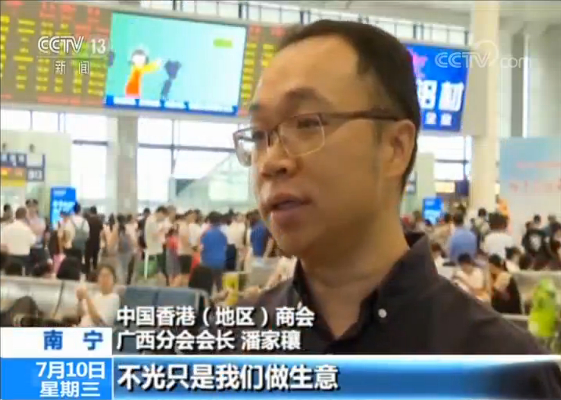 中国香港(地区)商会广西分会会长 潘家穰:这趟车开了以后,不光只是我们做生意有了一个时间上的节省、成本上的节省,其实也代表了我们物流、就是经贸这一块的那个活动会更加便利。
