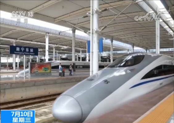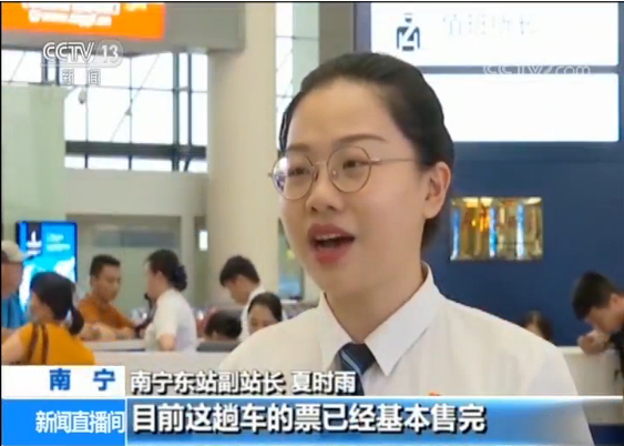 南宁东站副站长 夏时雨:目前这趟车的票已经基本售完,其中70%以上的旅客是直达香港西九龙站的。从未来几周的预售情况来看,这趟车是我们暑假期间的热门车。