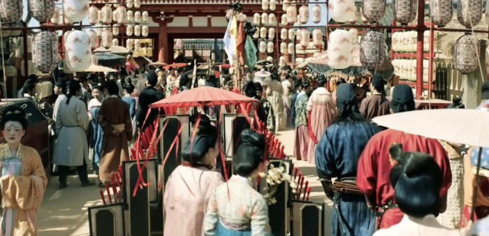 《长安十二时辰》剧中的长安街头。