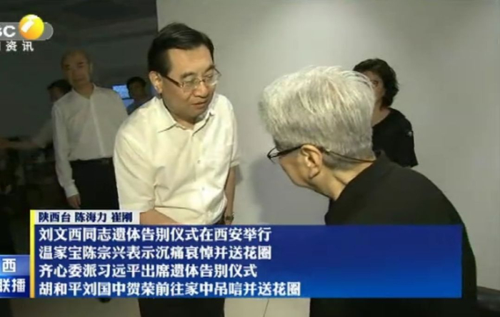 中共中央政治局原常委、国务院原总理温家宝,全国政协原副主席陈宗兴,习仲勋夫人齐心,革命先辈亲属毛新宇等致电表示沉痛哀悼,对刘文西同志家属表示亲切慰问,并送花圈。